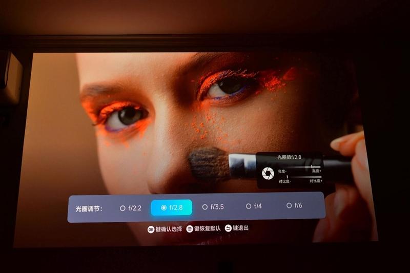 每次设置新的光圈时,都可以听见当贝s7 ultra pro投影仪内部的机械结构运作的声音,从画面上也可以很直观的看到亮度和对比度的变化。不过得益于当贝s7 ultra pro投影仪三色激光高达5300 cvia亮度,即使时收到最小光圈f6,画面亮度也依旧完全足够。