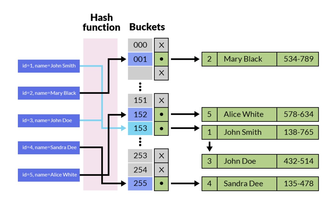 通过将索引键(如数据库表的主键、redis 的 key)经过哈希函数计算得到哈希值,再将哈希值映射到对应的存储位置(槽位),从而快速定位数据的物理地址或内存地址。
