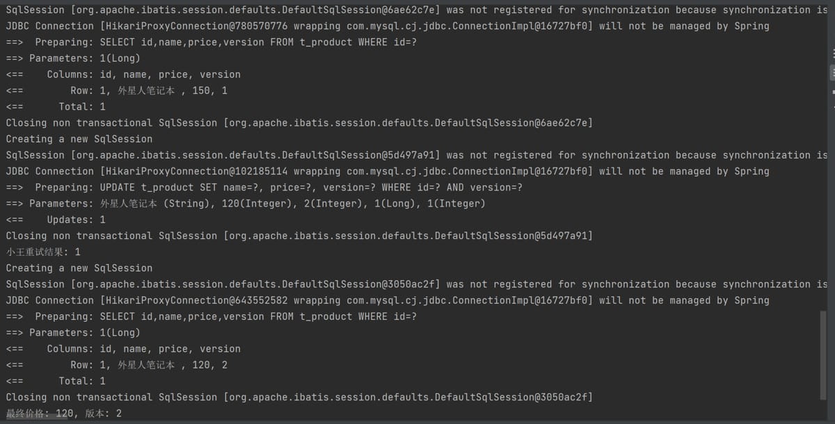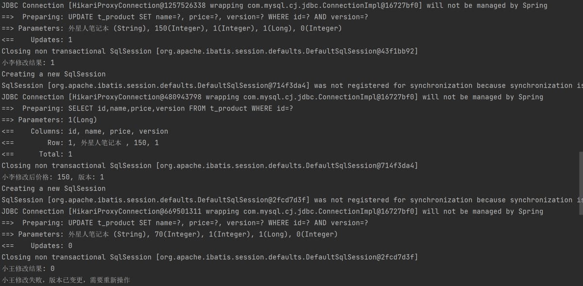 system.out.println("小李修改后价格: " + afterli.getprice() + ", 版本: " + afterli.getversion());