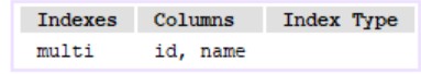 create table index_multi( id int not null, name varchar(20) not null, score float, index multi(id,name) );