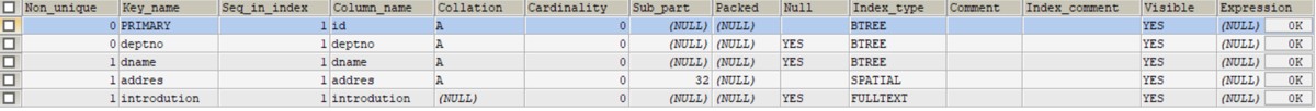 create table dept_index( deptno int unique index (deptno)-- index和key可以互相替换 );