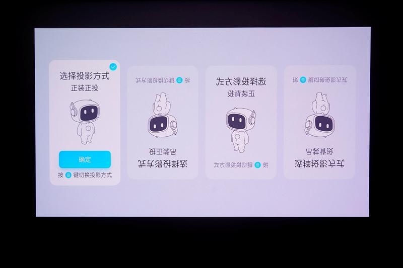 在首次开机时,当贝会提示选择安装方向,以正确投射画面,当贝x7 max投影仪支持正装吊装,正投背投四种安装方式。