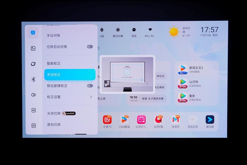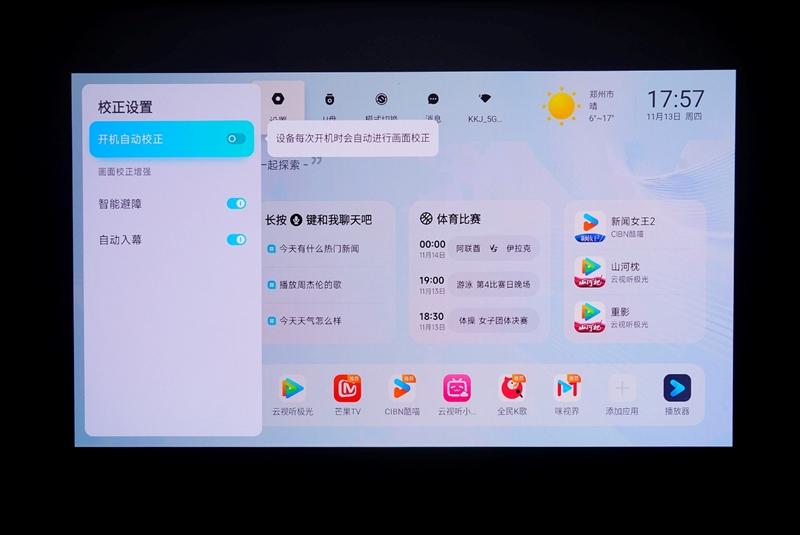 位移后自动对焦和开机自动校正功能可以保证任何时候投影画面都是清晰无变形的,方便用户随时观影使用。