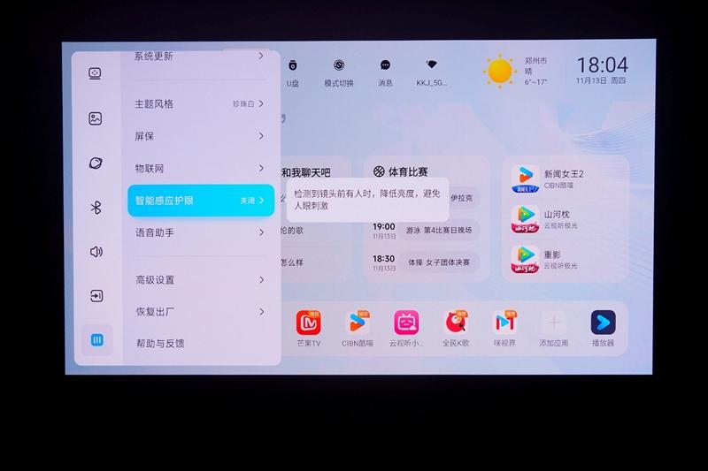当贝x7 max投影仪还支持环境光自适应,可以根据环境光线自动调整亮度,配合智能感应护眼功能,以及三色激光光源从源头上消除有害蓝光,长时间观影也不易产生疲劳,更加护眼。