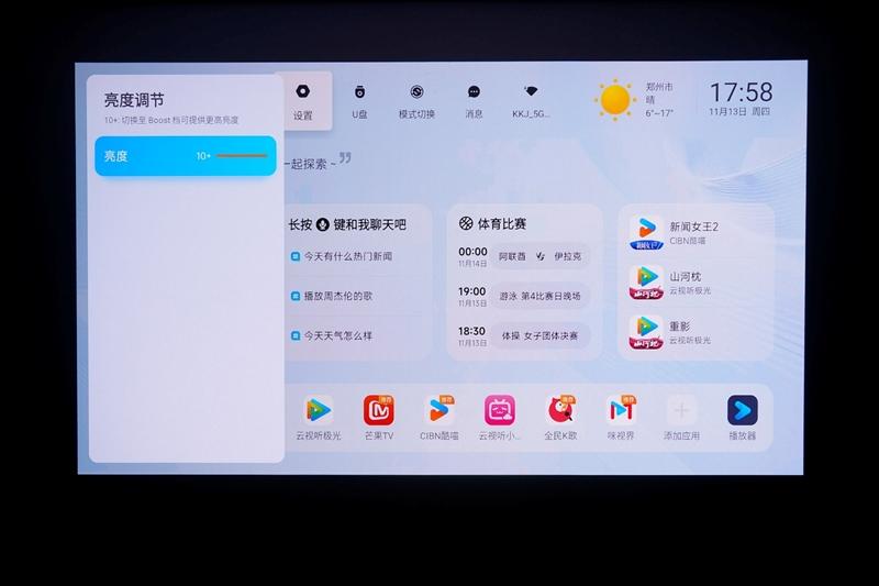 在亮度调节菜单中,可以注意到亮度10并没有把亮度条拉满,继续向右提高亮度,当贝x7 max投影仪就会进入boost档位,提供更高的亮度。