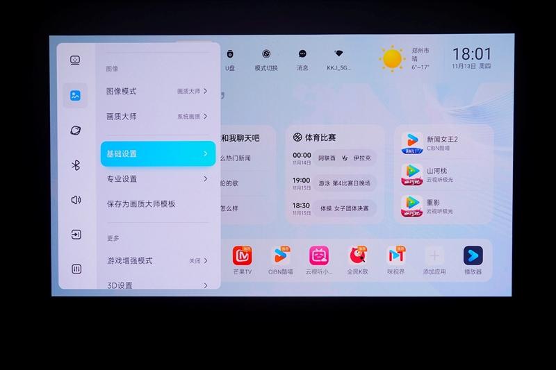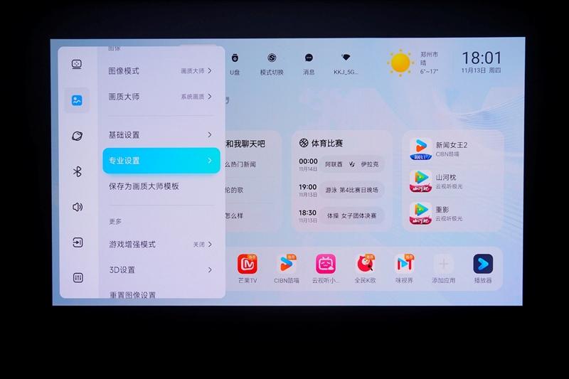 当贝x7 max投影仪的图像画质调整功能现在只在基础设置和专业设置两个菜单中出现,逻辑更清晰。