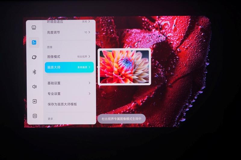 当贝独家的杜比视界优化大师,在x7 max投影仪中也再次得到进化,提供了杜比视界明亮和杜比视界柔和两个模式,分别适应明亮环境和黑暗环境下观看,用户可以根据自己的观影环境或者自己的喜好自由调节。