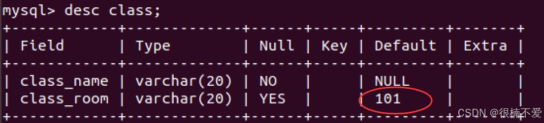 设置默认值,需要在字段后追加**“default 默认值”,此后如果添加数据时未对该字段添加数据,就会使用默认值去填充数据**。