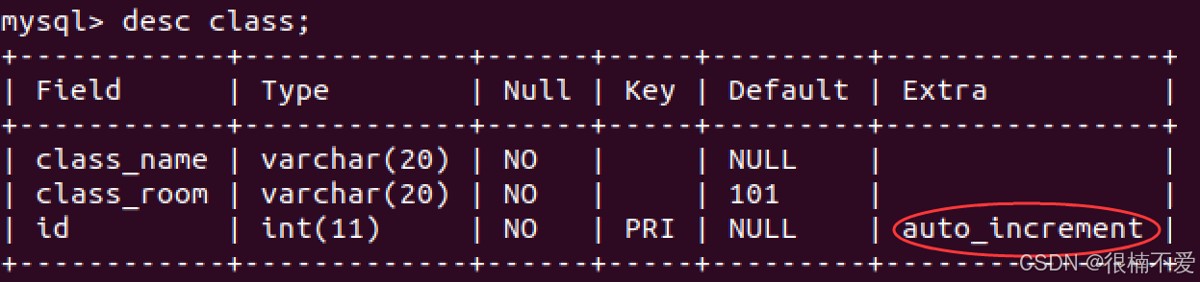 auto_increment:当对应的字段被设置自增长后,如果不添加数据,会自动的被系统触发,系统会从当前字段中已经有的最大值+1操作,得到一个新的不同的值。必须和主键搭配使用,作为逻辑主键。