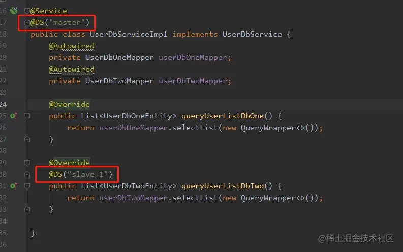 数据源切换,使用的是提供的**@ds**注解。