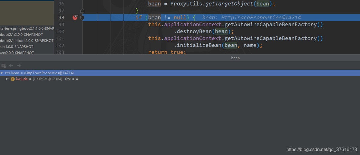 // 这里他把对象 销毁再创建 但是由于我只想刷新我自己的类 这里却把所有带configurationproperties注解的都销毁重新创建