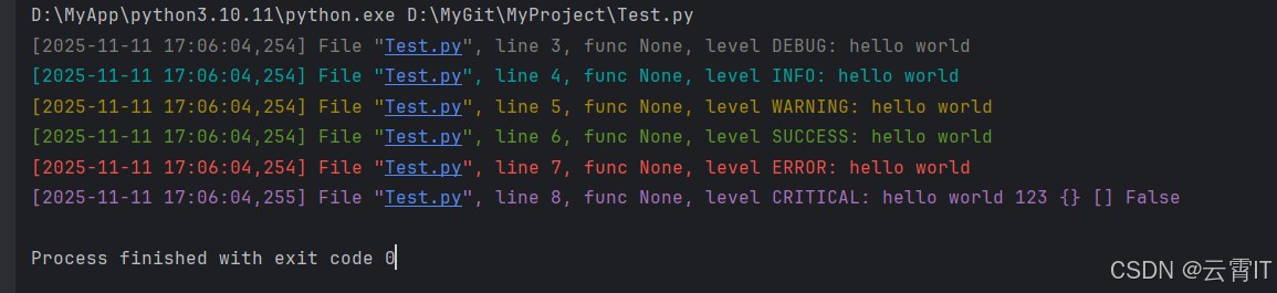 logger.success('hello world')