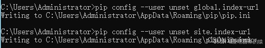 pip config --user unset site.index-url pip config --user globalsite.index-url