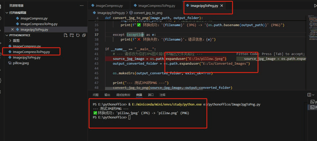 运行: 运行脚本,可以尝试修改 batch_process_images 的 target_format 参数(“png”, “jpg”, none)来测试不同功能。