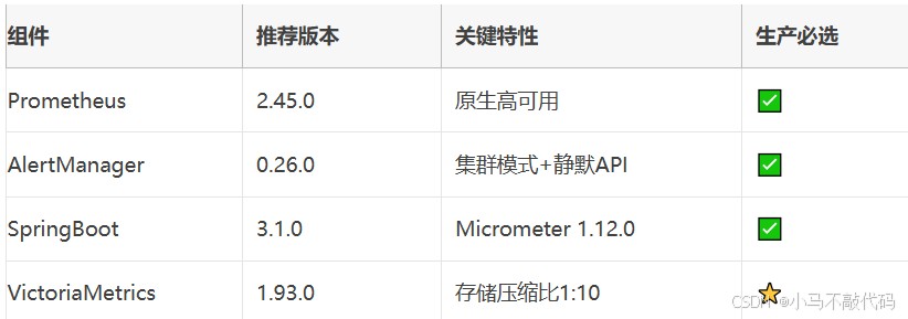 springboot 3.1.0与micrometer 1.12.0的搭配为应用指标采集提供了最佳实践,支持超过600种不同类型的监控指标。对于存储层,victoriametrics 1.93.0以其卓越的存储压缩效率成为处理海量监控数据的首选方案,特别适合金融级应用场景。
