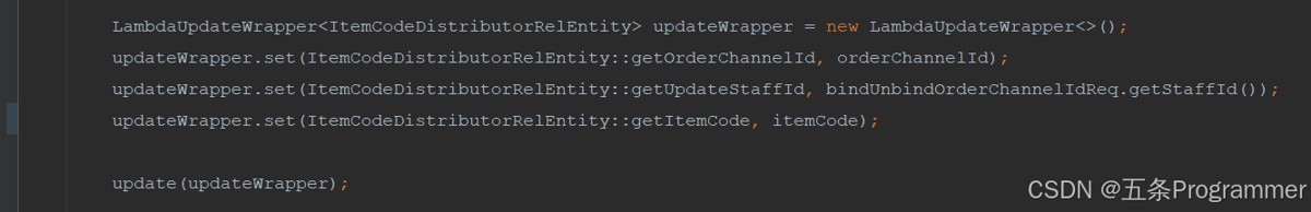 string updatestatement = "update hm_product.item_code_distributor_rel " + "set " + sb + " where " + whereclause + ";";