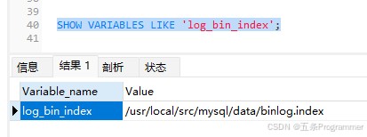 -- 用于查看 mysql 服务器的二进制日志索引文件的名称。