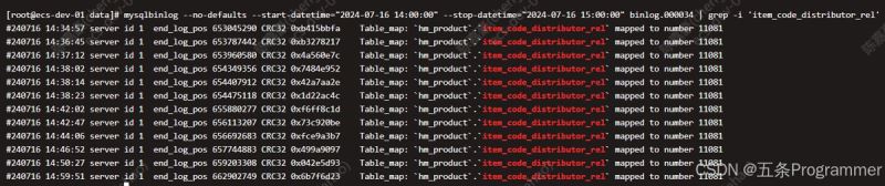 mysqlbinlog --no-defaults --start-datetime="2024-07-16 14:00:00" --stop-datetime="2024-07-16 15:00:00" binlog.000034 | grep -i 'item_code_distributor_rel'