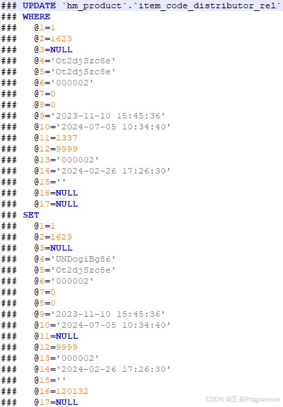 所以仅需要以主键id(@1)作为条件,将旧数据(where中)的@4 和 @16重新set回去即可