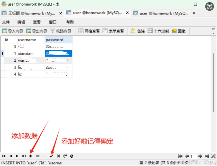 记得往表里添加一些数据