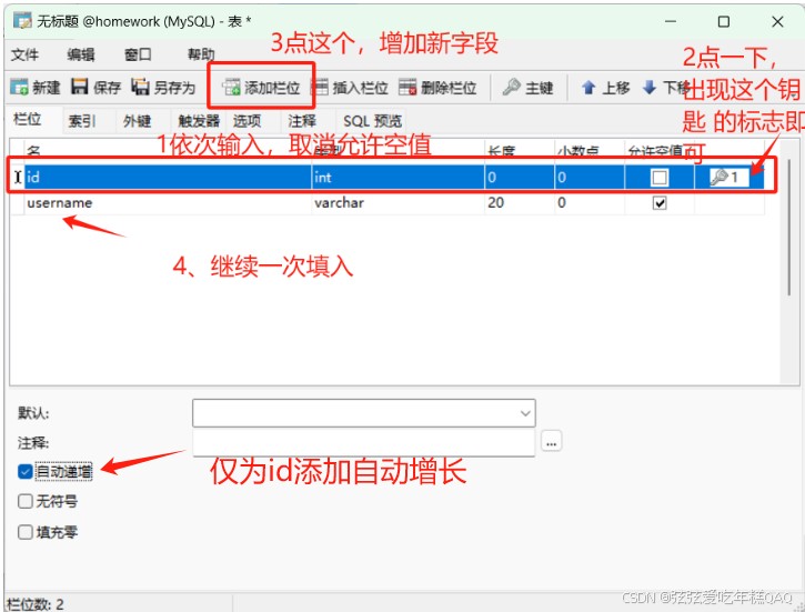 最后 初始的表长这样,我的表名叫user