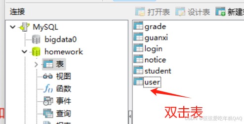 双击数据库一下,绿色亮起,创建表