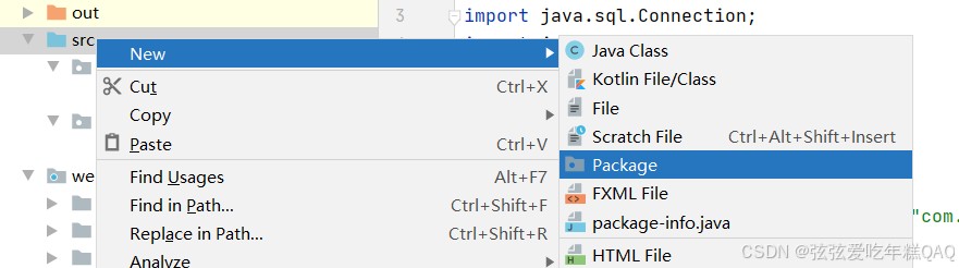 右击src,填写包名,我的叫database