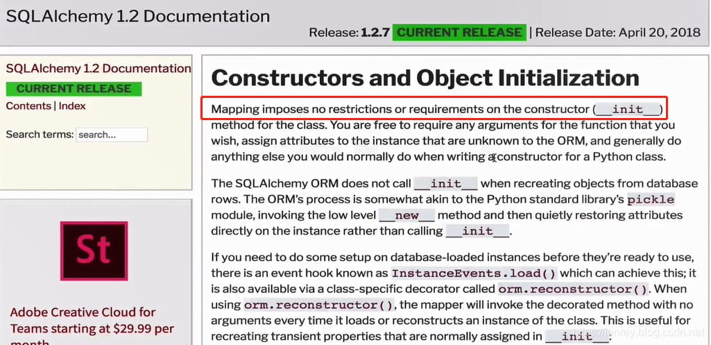 如果我们就想在模型对象实例化的时候执行__init__,我们就需要用到sqlalchemy比较高级的机制,通过下面的官方文档我们知道是明确不会执行__init__的