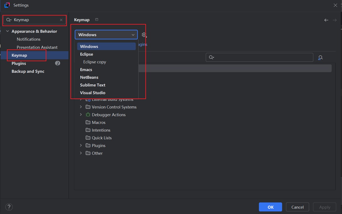 在右侧的 “keymaps” 下拉列表中,选择你想要的快捷键风格,如 “eclipse” 等。
