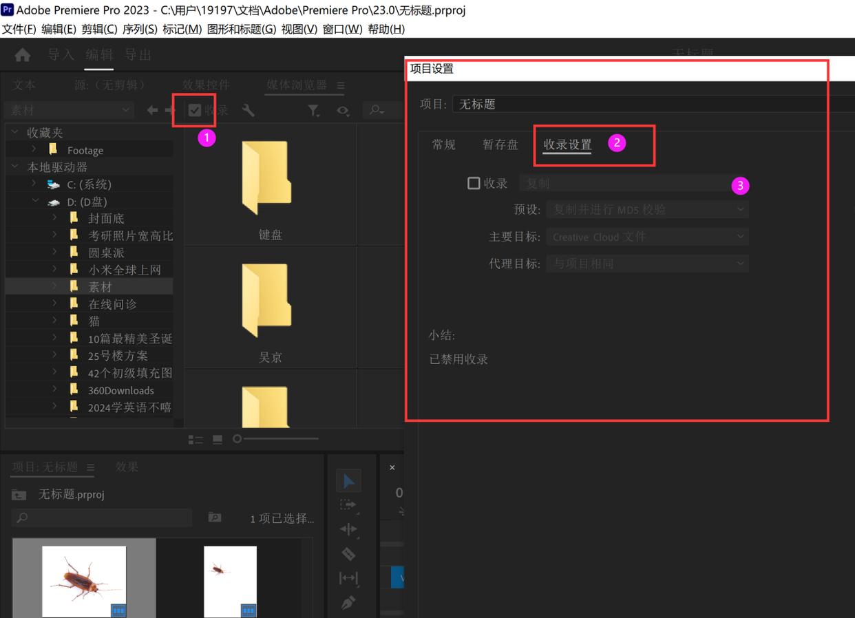 - 最好在使用素材时,利用收录设置复制素材到新项目文件夹下,以防后续编辑时出现源文件误删除,造成丢失。