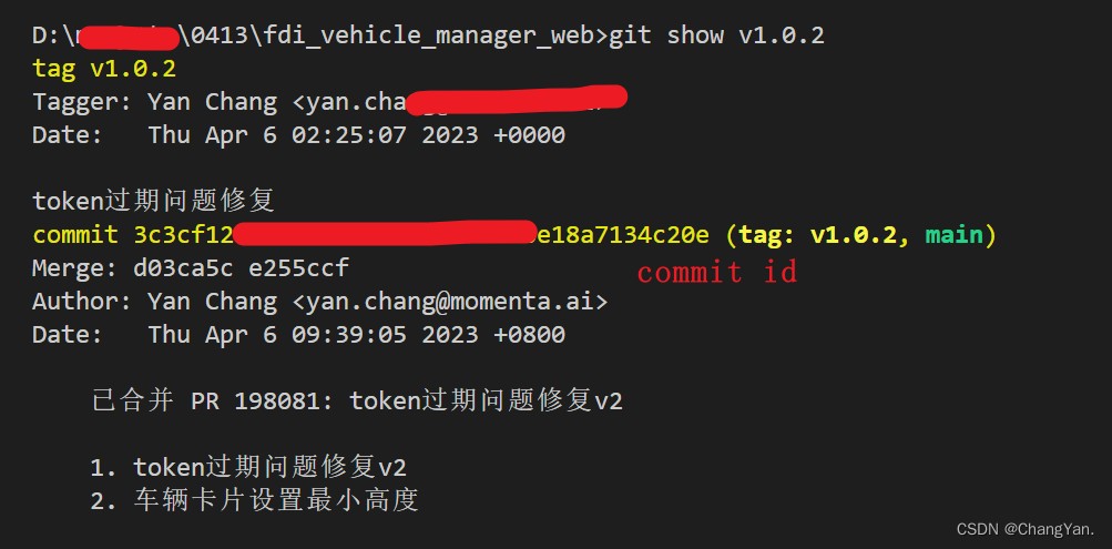 然后使用指令git show v1.0.2就可以看到v1.0.2的commit id