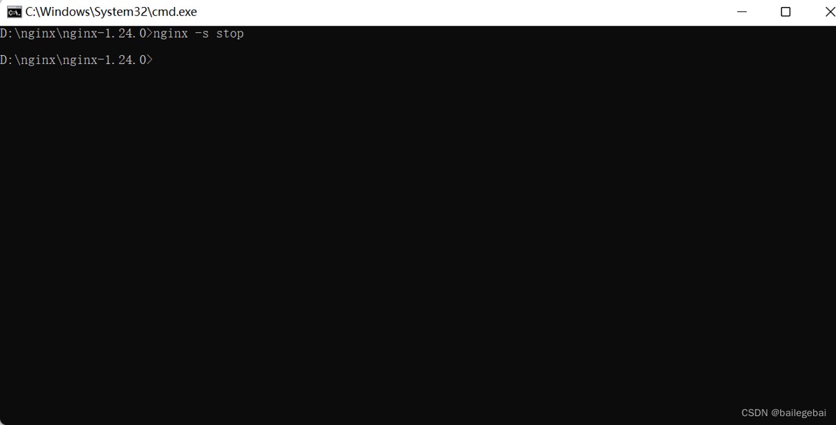 在nginx目录下打开cmd,然后执行启动命令,双击nginx.exe后,在修改配置后,再重启、关闭nginx都不生效,只有在任务管理器中进行关闭所有nginx进程。