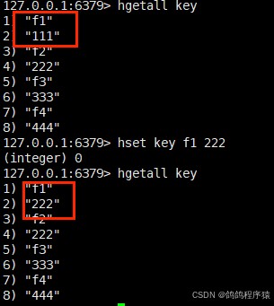 | hsetnx key field value | 设置值,但必须在 field 不存在时才能设置成功 | o(1) |