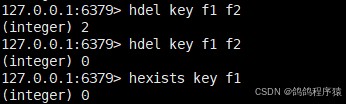| hdel key field [field …] | 删除 field | o(k), k 是 field 个数 |