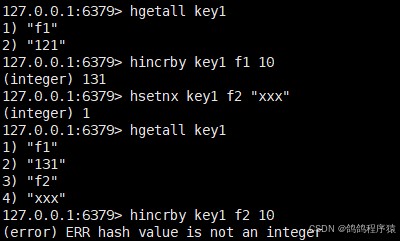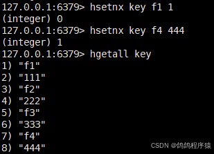 hsetnx在字段不存在的情况下,设置 hash 中的字段和值。