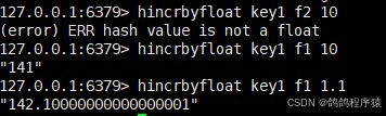 hincrbyfloathincrby的浮点数版本, 将 hash 中字段对应的数值(可以是整数和浮点数)添加指定的值。