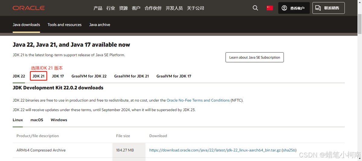进入官网下载,官网地址,选择jdk 21版本