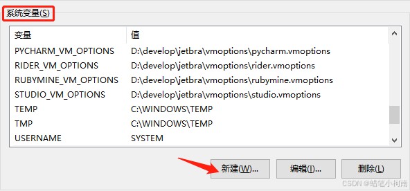 在 系统变量 中,点击 新建 按钮