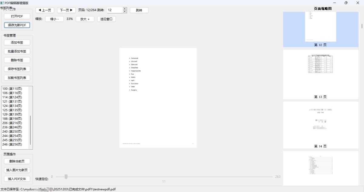 今天,我们将深入分析一个基于 wxpython(gui 框架)和 pymupdf 构建的 pdf 编辑器源代码。这个项目不仅实现了 pdf 的浏览,还支持页面删除、插入图片/pdf、书签管理以及缩略图预览等“硬核”功能。