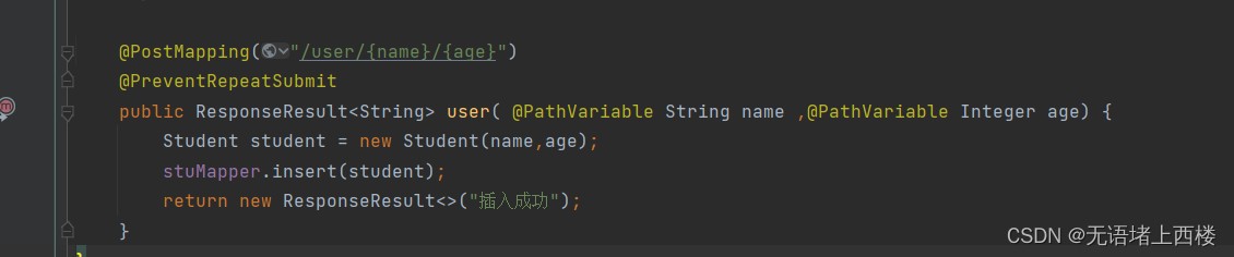 // public responseresult<string> user( @pathvariable string name ,@pathvariable integer age) {