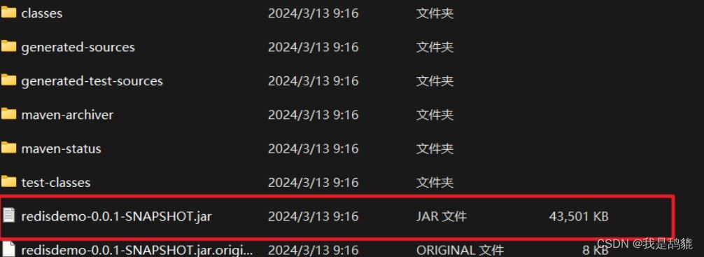 打包完成之后我们可以进入到项目对应的target文件夹下边,结构如下: