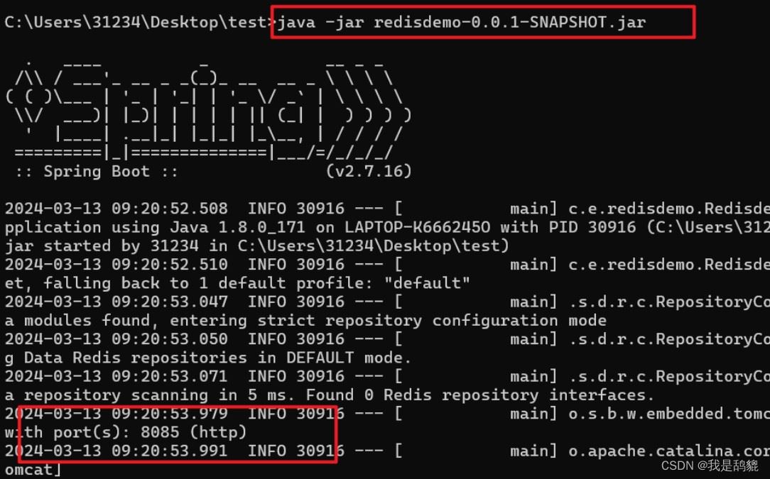 我们可以把jar包复制一份,然后放到一个新的文件夹中,并在文件夹中新建一个application.yml文件,重新制定port为8085,然后使用java -jar运行程序。