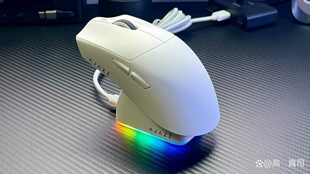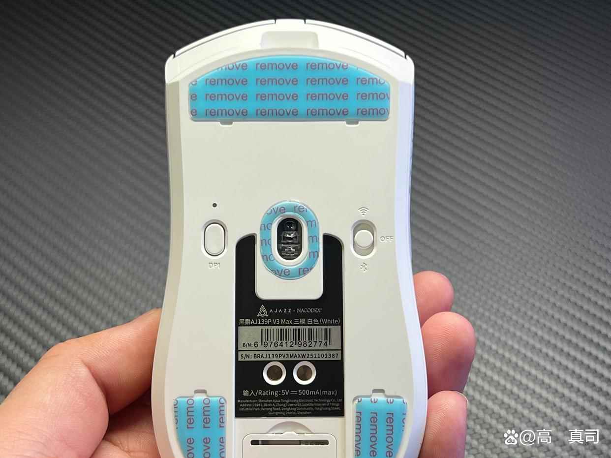 外观方面,拿aj139p v3和我在用的atk烈空x1 v2对比,正面aj139p v3整个的宽度没有烈空x1 v2宽,二者高度差不多,长度也差不多,aj139p v3实测重量在70克出头,这重量我能接受,预算只有100多过度地追求极致轻量化也没有什么意义。