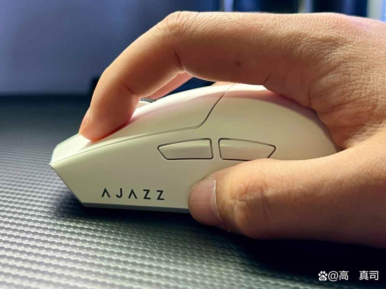 侧键方面给到了两颗分离式侧键,aj139p v3的侧键形状我个人觉得设计的不是特别好,因为它不规则,所以按压手感上因为左上凸起的部分会有点奇怪。