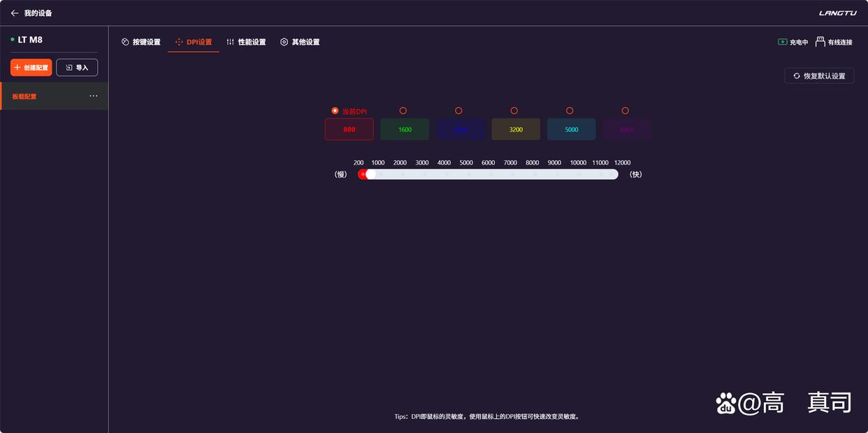 驱动也是双端驱动,鼠标换场景换设备随插随用,该有的功能都有,宏录制、改键、调节dpi和休眠时间等。