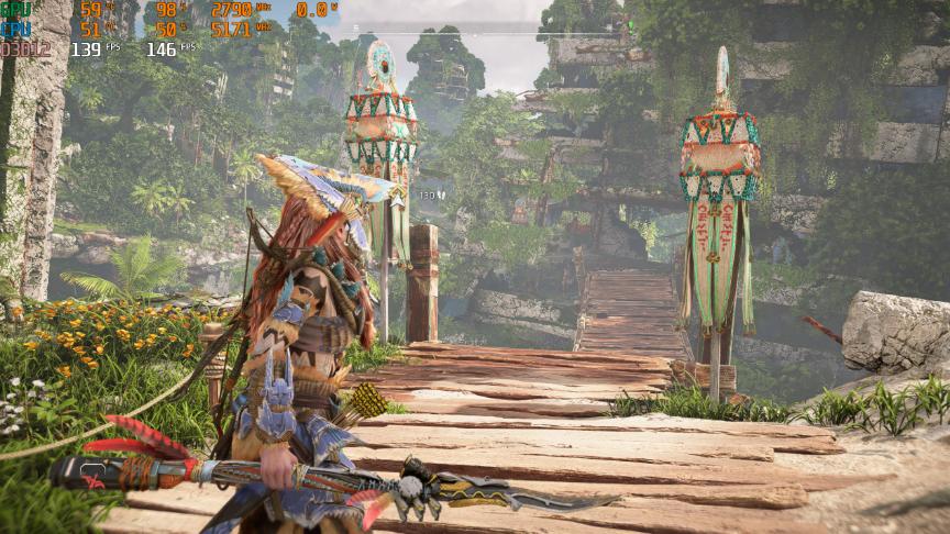 以一镜到底曾赢得最佳游戏奖项的3a大作,该游戏无基准测试程序,采用实际体验,rog魔霸9x在2k分辨率最高画质下的平均帧速为142fps,丝滑流畅。从中可以看到,ultra 7 265kf的利用率达到了44%,频率约5.2ghz。