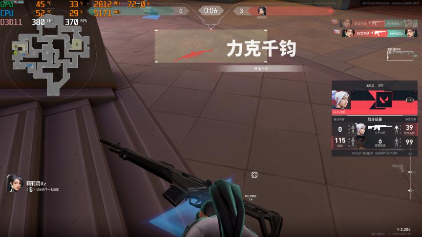 《无畏契约》对显卡要求较低,在2k分辨率最高画质下,rtx 5070功率仅为72w,占用率也很低,对cpu性能敏感,体验一段时间的平均帧速达到了370fps,流畅性非常高,再次证明ultra 7 265kf应对这类网络游戏游刃有余。