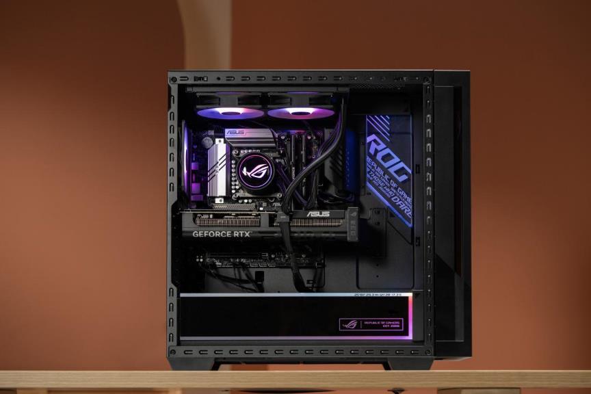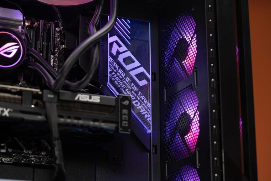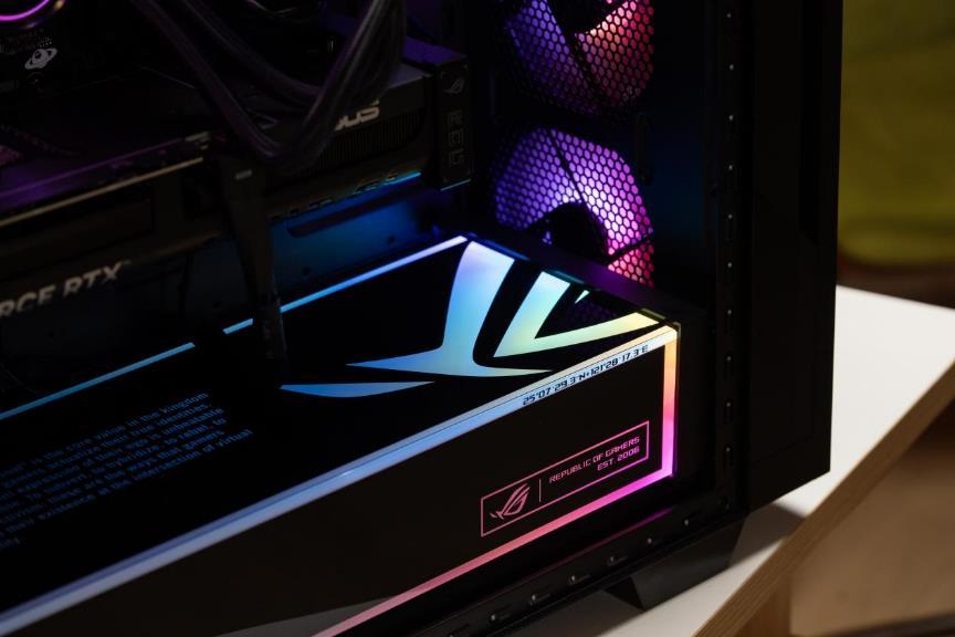 ▲内部灯效:前面板rgb风扇与rog发光亚克力面板