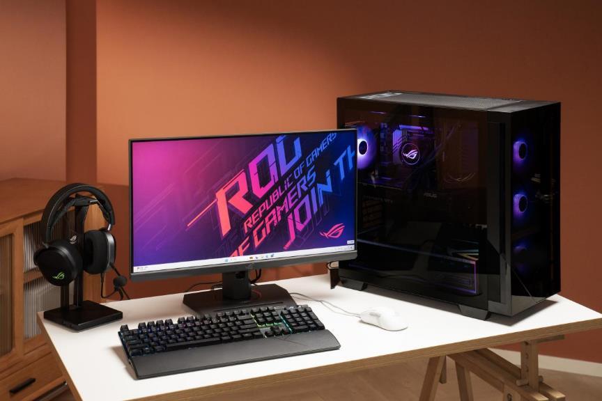 并且以上还仅限于机箱部件——别忘了rog全家桶支持自家的神光同步,如下图所示,搭配上rog键盘、鼠标、耳机、显示器,就组成了全套的rog电竞神器,整套灯效既不杂乱刺眼,又能瞬间拉满电竞仪式感。更贴心的是,它们无需复杂调试,通过奥创智控中心就能一键切换,小白用户也能打造属于自己的个性化桌面电竞灯效。