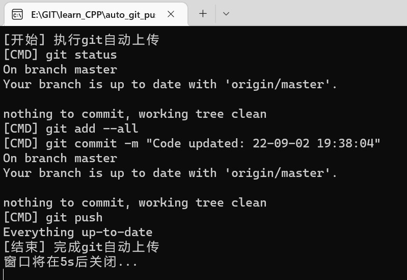 有的时候,我的学习代码其实没啥好commit的,写一个自动上传的脚本,就可以自动执行完所有的命令,而不需要自己手动进行git三板斧操作